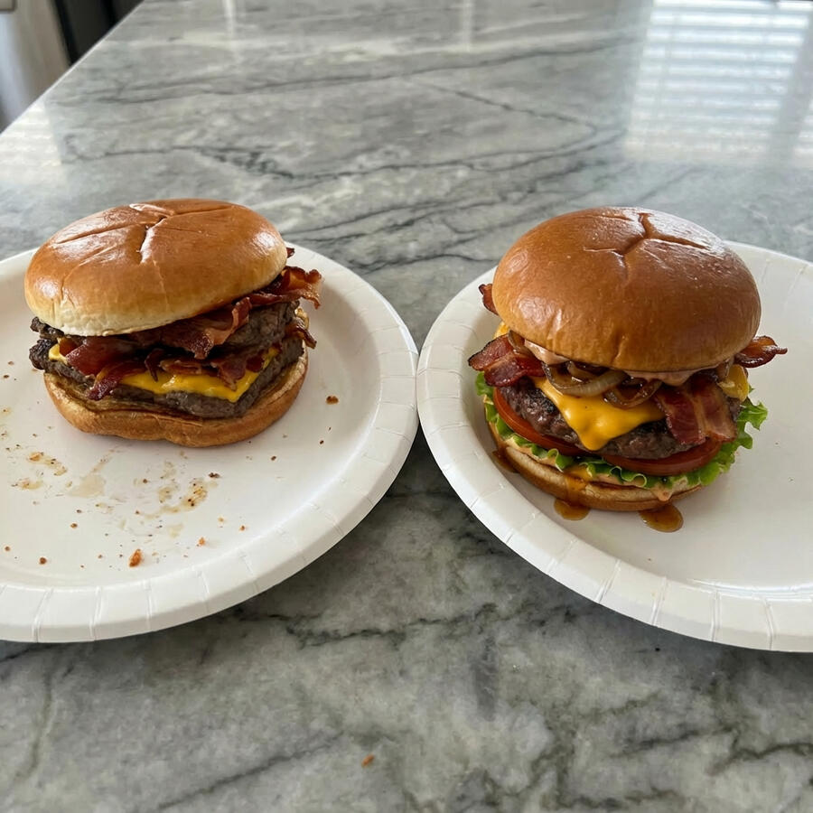 These two barbecue bacon burgers have almost the same number of calories, but only one of them is macro friendly.Can you guess which one?Answer: The one on the right!
