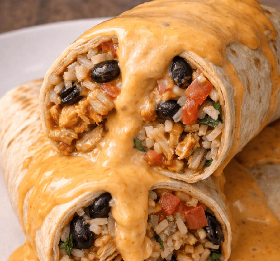 • Smothered Queso Chicken Burrito